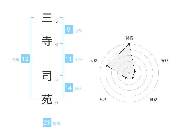 三寺 司苑さんの総格は23画の5点!
