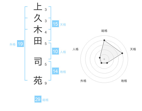上久木田 司苑さんを姓名の画数から五運を鑑定