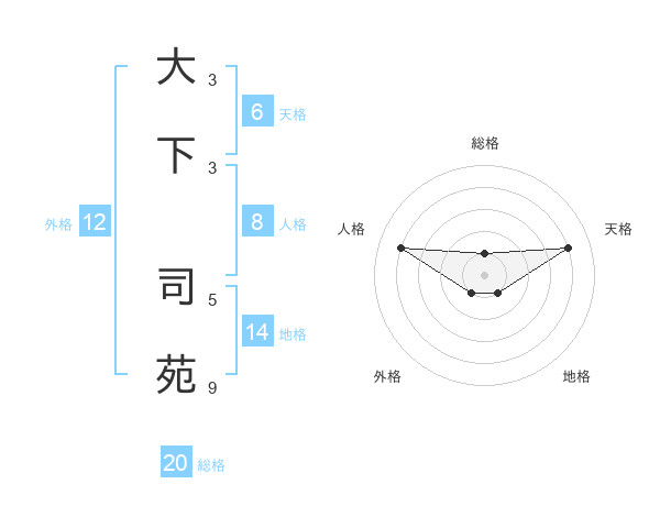 大下 司苑さんの総格は20画の1点!
