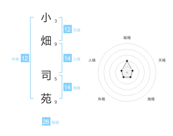 小畑 司苑さんを姓名の画数から五運を鑑定