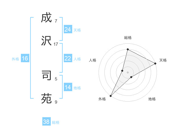 成沢 司苑さんを姓名の画数から五運を鑑定