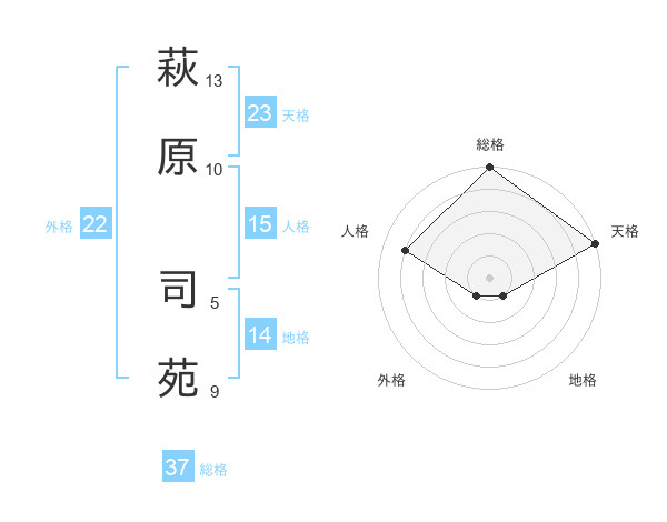 萩原 司苑さんを姓名の画数から五運を鑑定