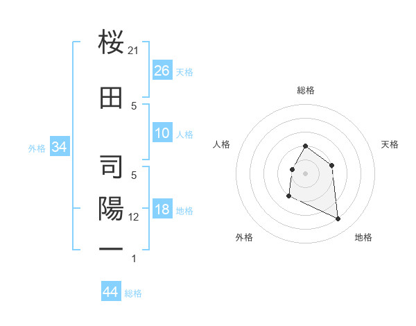 桜田 司陽一さんを姓名の画数から五運を鑑定