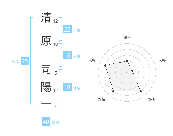 清原 司陽一さんの天格は22画の1点!