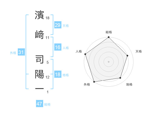 濱﨑 司陽一さんの総格は47画の5点!