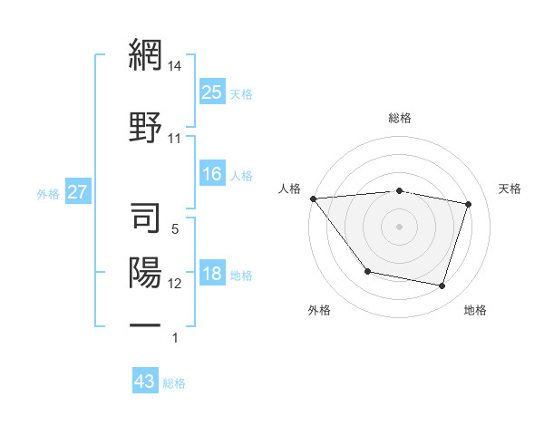 網野 司陽一さんを姓名の画数から五運を鑑定