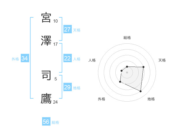 宮澤 司鷹さんの総格は56画の1点!