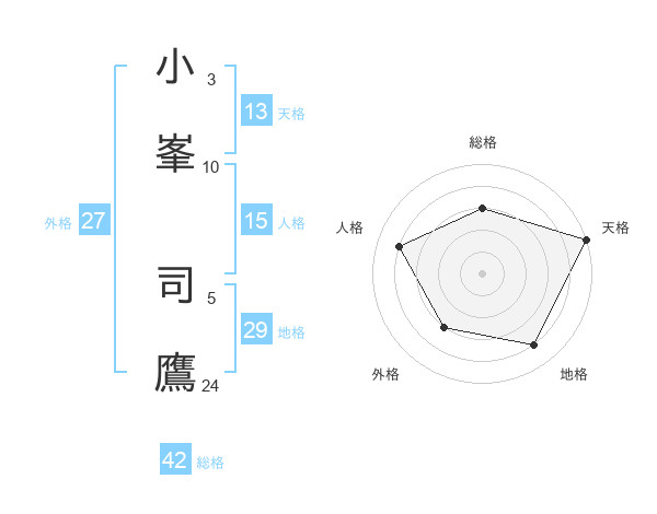 小峯 司鷹さんの総格は42画の3点!