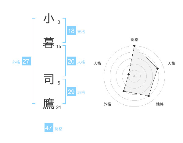 小暮 司鷹さんを姓名の画数から五運を鑑定