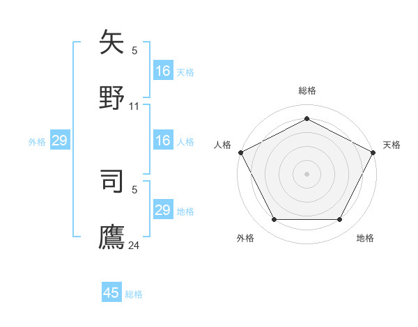 矢野 司鷹さんの天格は16画の5点!