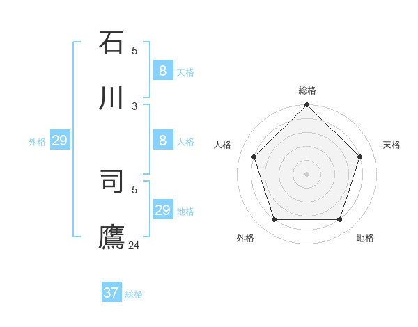 石川 司鷹さんを姓名の画数から五運を鑑定