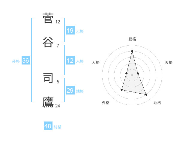菅谷 司鷹さんの総格は48画の4点!