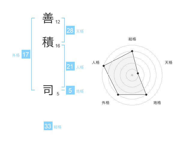 善積 司さんの総格は33画の4点!