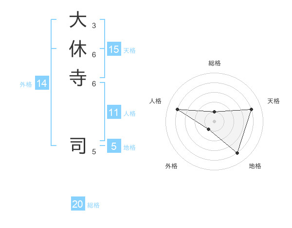 大休寺 司さんの総格は20画の1点!