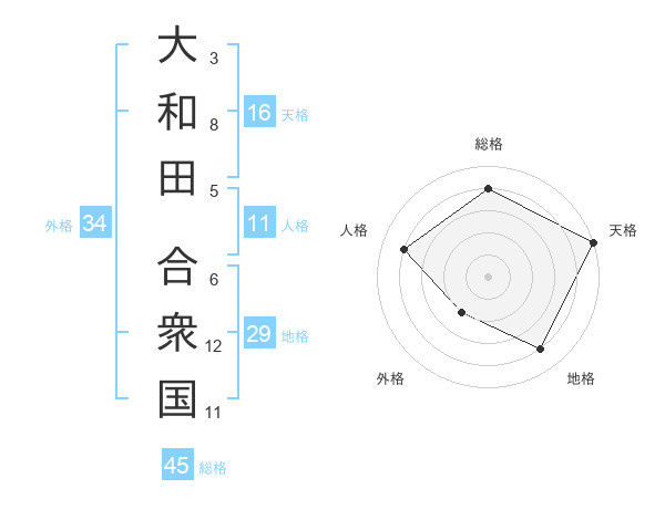 大和田 合衆国さんを姓名の画数から五運を鑑定