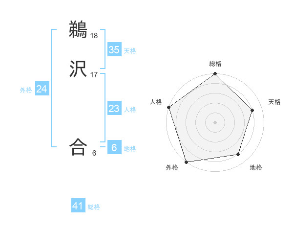 鵜沢 合さんを姓名の画数から五運を鑑定