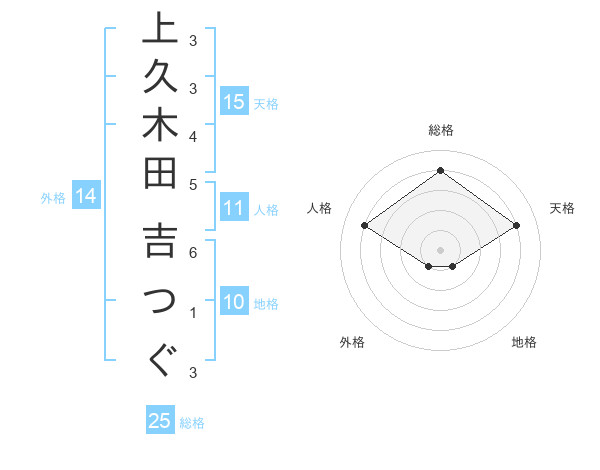 上久木田 吉つぐさんの天格は15画の4点!