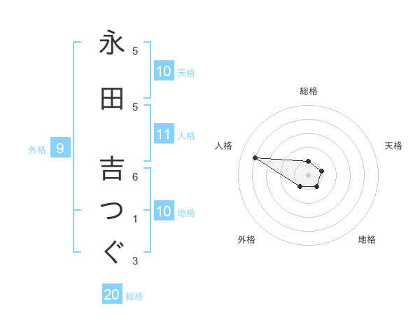 永田 吉つぐさんの総格は20画の1点!