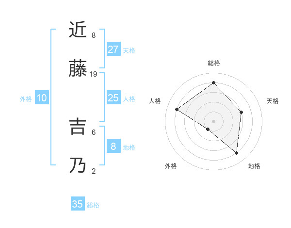 近藤 吉乃さんを姓名の画数から五運を鑑定