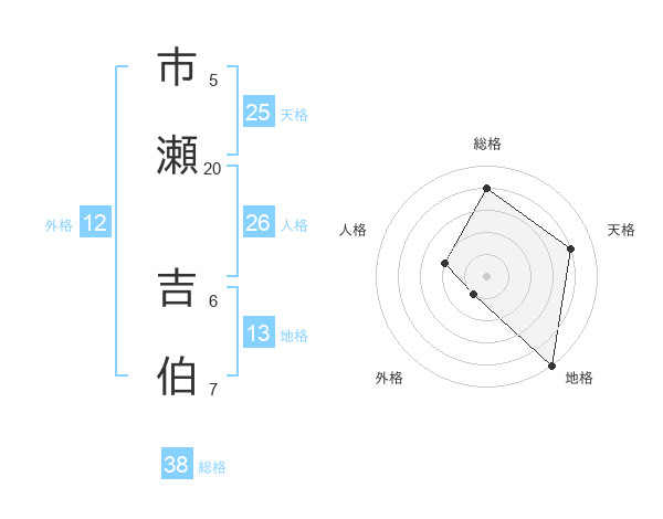 市瀬 吉伯さんの総格は38画の4点!