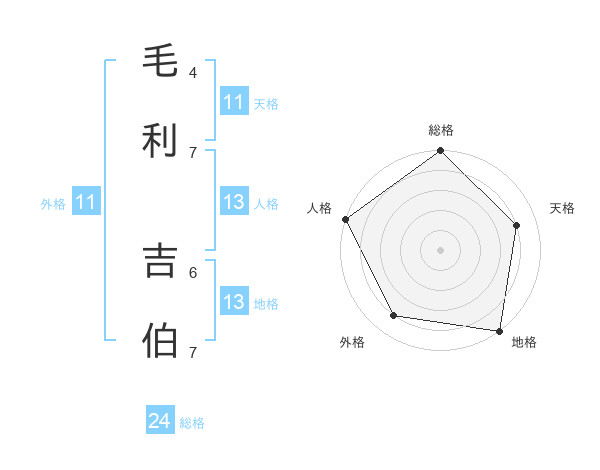 毛利 吉伯さんを姓名の画数から五運を鑑定