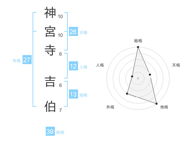 神宮寺 吉伯さんの総格は39画の5点!