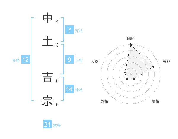 中土 吉宗さんの総格は21画の5点!