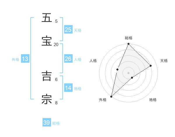 五宝 吉宗さんの外格は13画の5点!