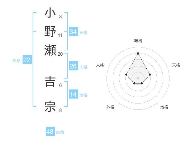 小野瀬 吉宗さんの総格は48画の4点