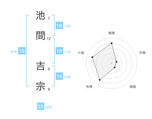 池間 吉宗さんの総格は33画の4点!