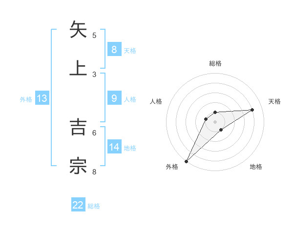 矢上 吉宗さんを姓名の画数から五運を鑑定