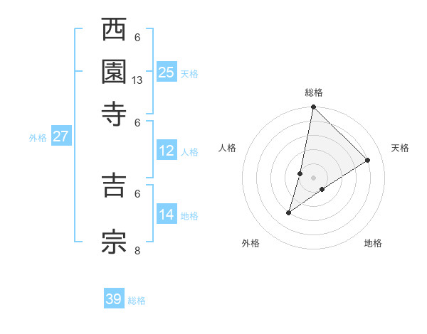 西園寺 吉宗さんを姓名の画数から五運を鑑定