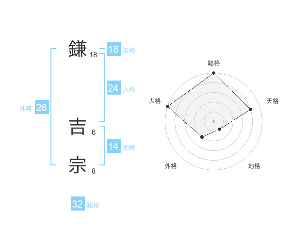 鎌 吉宗さんの総格は32画の5点!