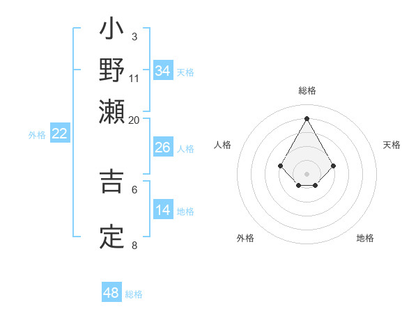 小野瀬 吉定さんの総格は48画の4点!