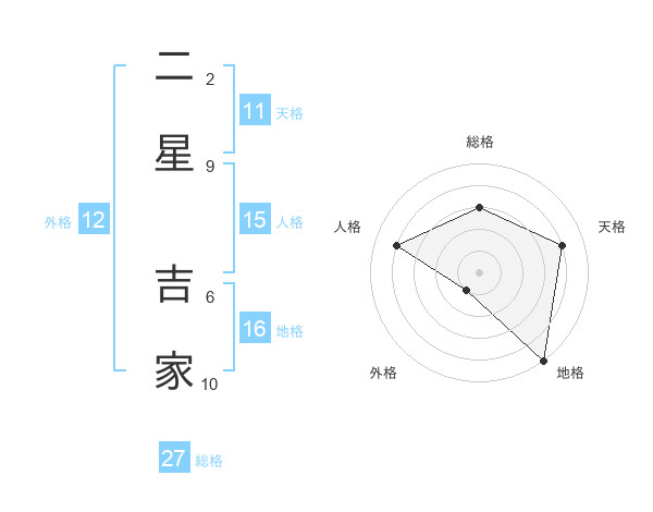 二星 吉家さんの総格は27画の3点!
