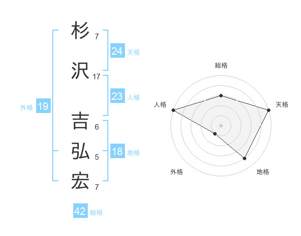 杉沢 吉弘宏さんを姓名の画数から五運を鑑定