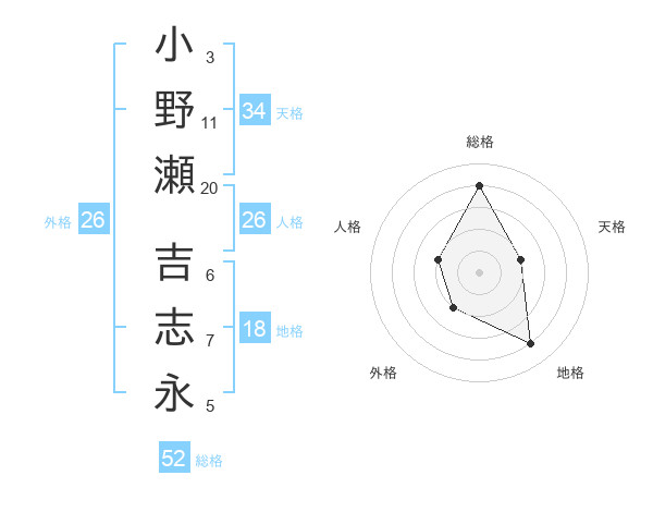 小野瀬 吉志永さんの総格は52画の4点!
