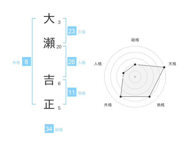 大瀬 吉正さんを姓名の画数から五運を鑑定