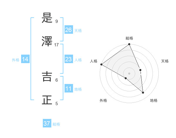 是澤 吉正さんの人格は23画の5点!