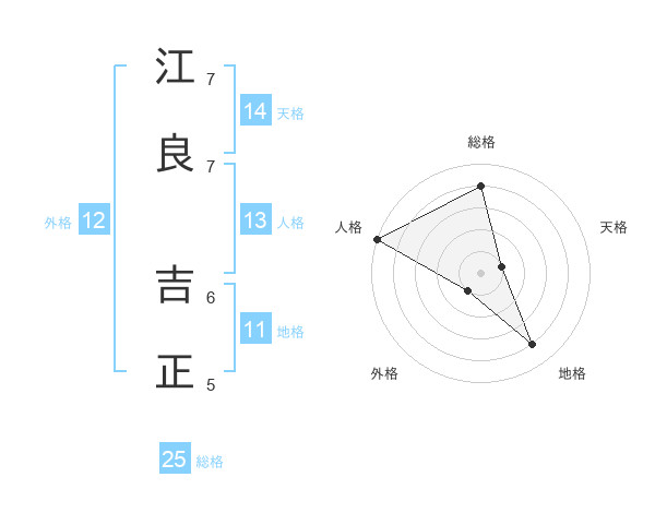 江良 吉正さんの総格は25画の4点!