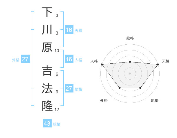 下川原 吉法隆さんを姓名の画数から五運を鑑定