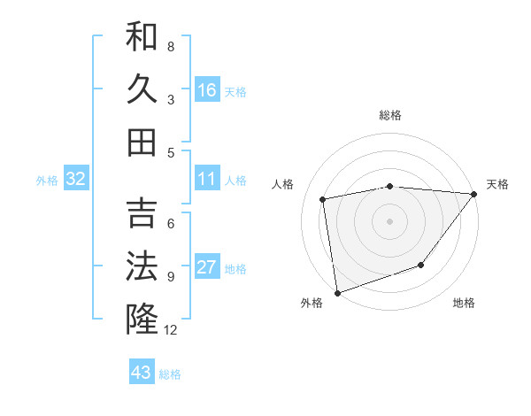 和久田 吉法隆さんを姓名の画数から五運を鑑定