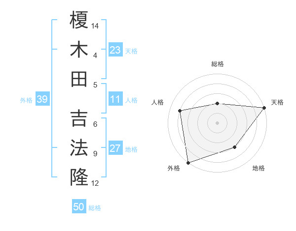 榎木田 吉法隆さんの外格は39画の5点!