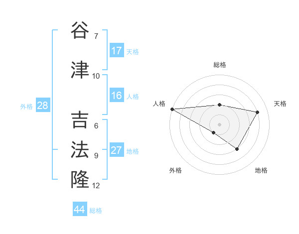 谷津 吉法隆さんの総格は44画の2点!