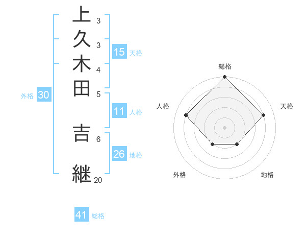 上久木田 吉継さんを姓名の画数から五運を鑑定
