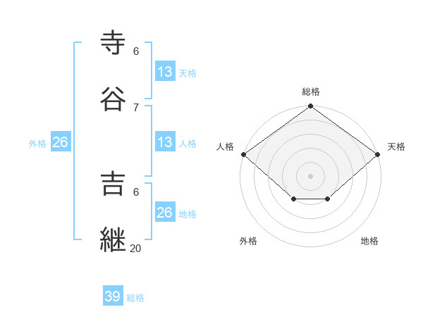 寺谷 吉継さんを姓名の画数から五運を鑑定