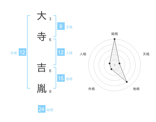 大寺 吉胤さんの総格は24画の5点!