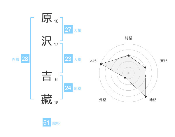 原沢 吉藏さんの総格は51画の3点!
