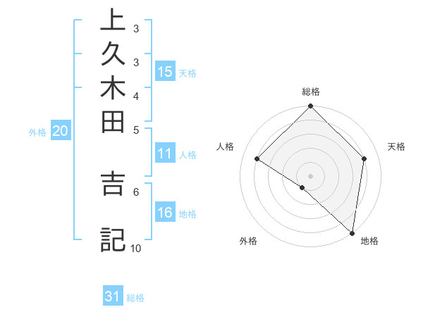 上久木田 吉記さんを姓名の画数から五運を鑑定