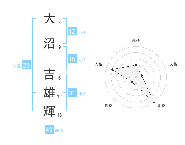 大沼 吉雄輝さんを姓名の画数から五運を鑑定